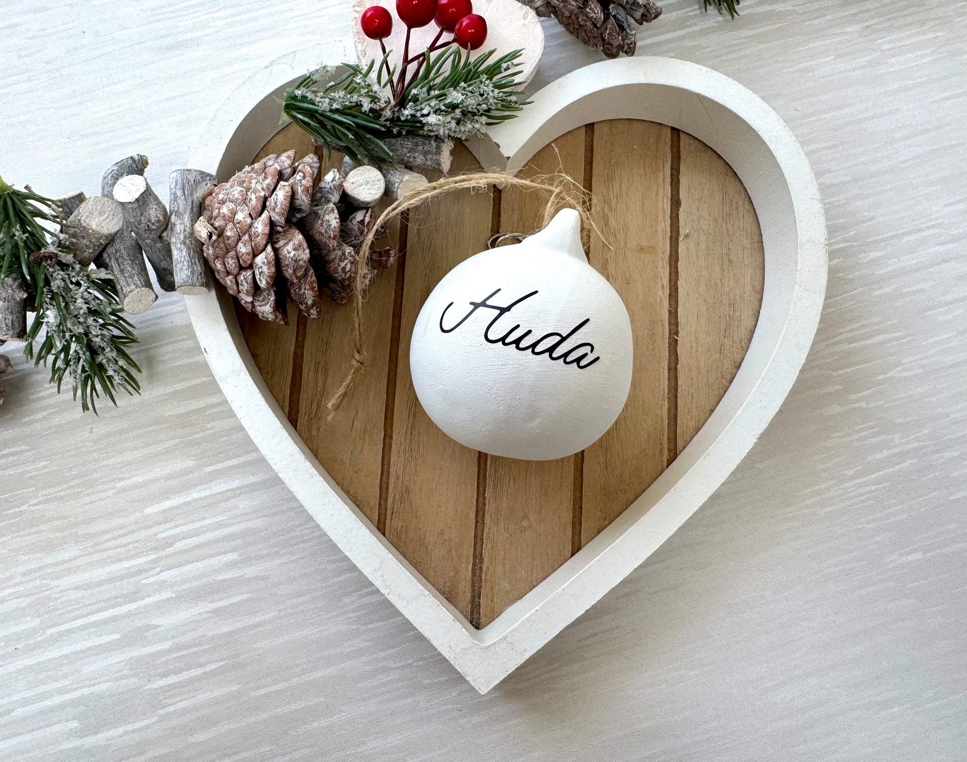 Create your own Christmas bauble in our script font. Perfect for adding a personalised touch to your Christmas tree, a stocking filler or Secret Santa gift.